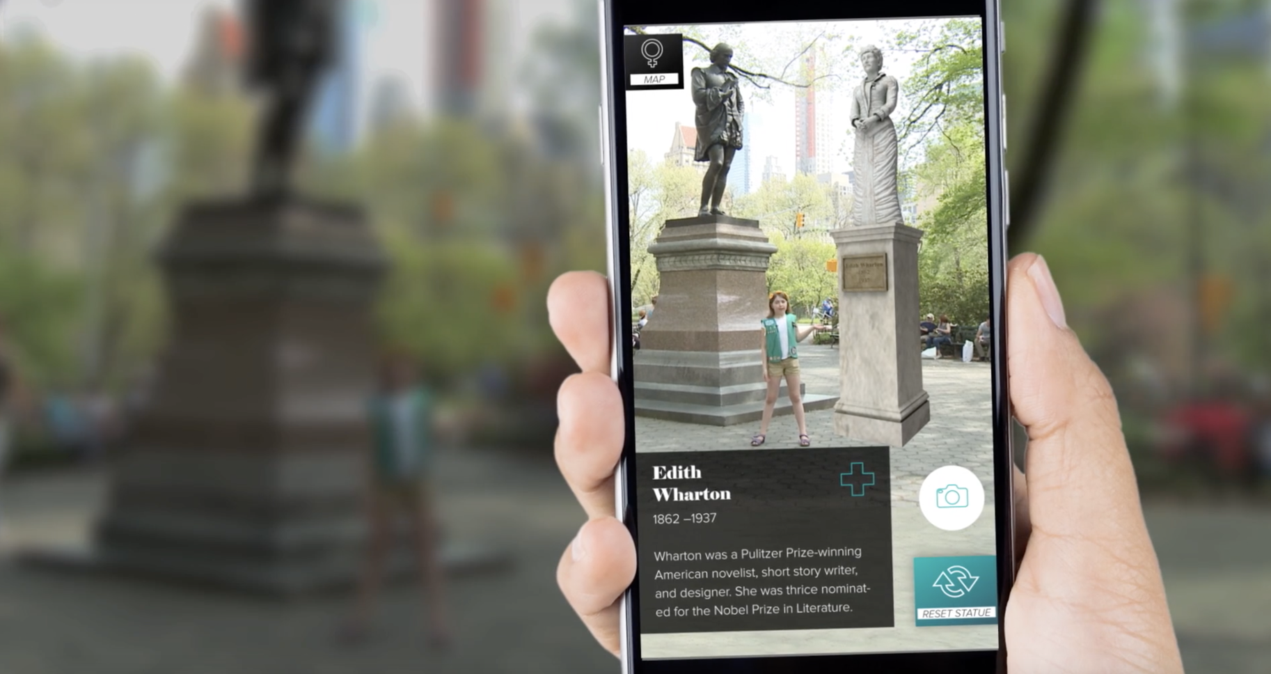 92% of all statues are of men. Unfortunately, the cost and permits required to create new statuary, makes it extremely difficult to bridge the gender gap. So we created a first-of-its kind platform that allows people everywhere to create, place and discover statues of historic women through never-before-used technology. Our hope was to create equality in statuary to better represent a shift to a more equal world.